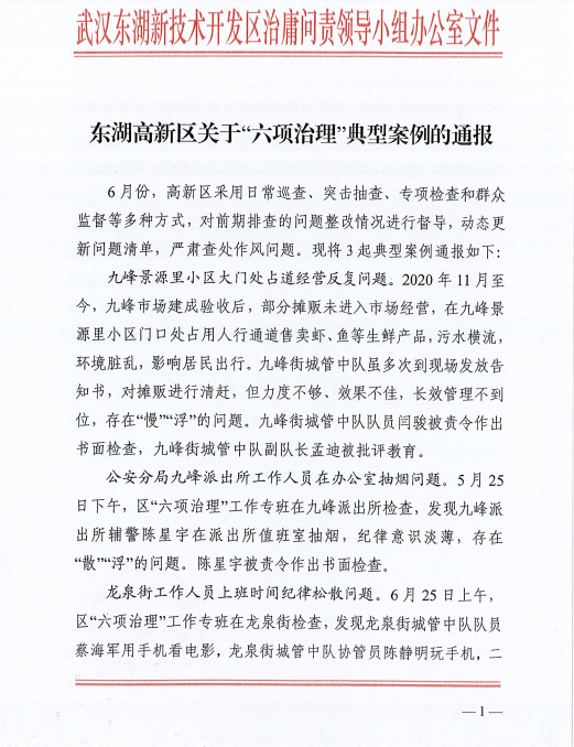 東湖高新區(qū)關(guān)于“六項(xiàng)治理 ”典型案例的通報(bào)