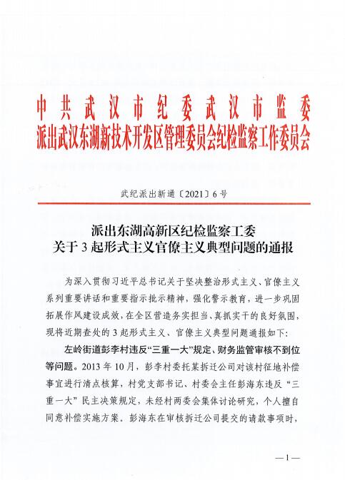 派出東湖高新區(qū)紀(jì)檢監(jiān)察工委關(guān)于3起形式主義官僚主義典型問題的通報(bào)