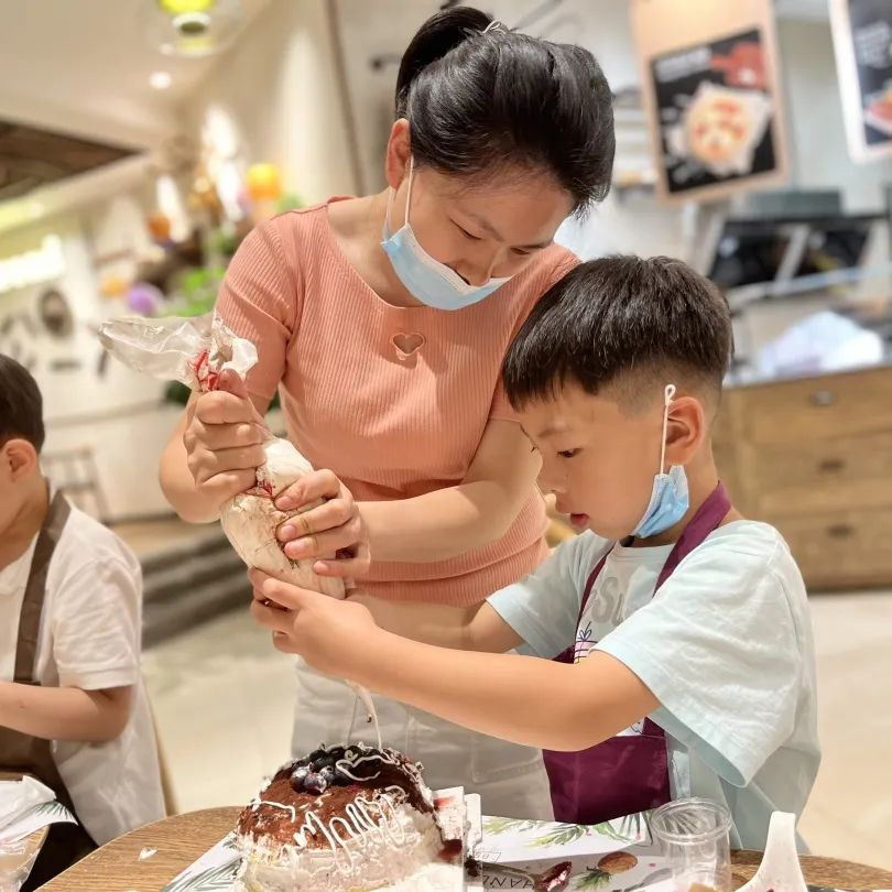 活動現(xiàn)場,孩子們在烘焙師的悉心指導(dǎo)和父母的協(xié)助下,精心制作出屬于他們獨(dú)一無二的美味蛋糕。